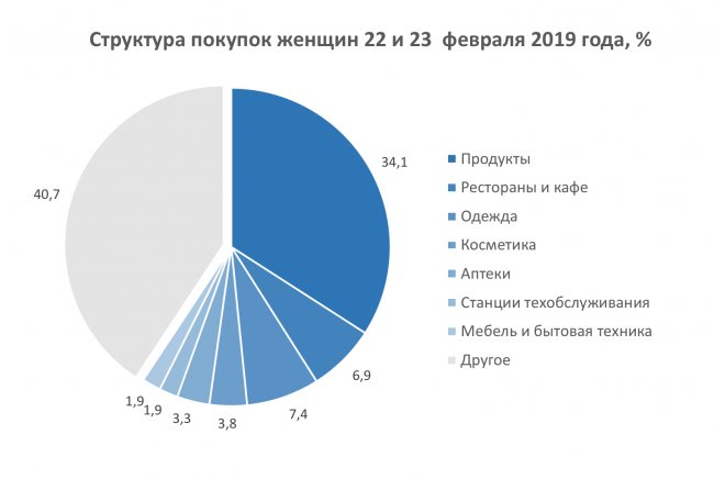В день защитника Отечества и накануне дамы, конечно, потратили больше мужчин. Женщины подтвердили сложившиеся по поводу лучших подарков для защитников стереотипы. Среди покупок прекрасной половины клиентской базы в ТОП-10 категорий со значительным перевесом относительно будней вошли магазины одежды (7.4% от всех трат клиентов-женщин против 2% в обычный день) и магазины косметики (3.8% против 1.5%): дамы не забыли приобрести пену для бритья и носки. Средний чек женских покупок составил 1094 рубля, самая же дорогая покупка совершена в одном из крупнейших магазинов страны на 1 миллион рублей.