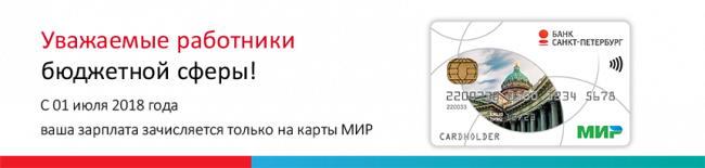 Зарплаты бюджетникам начисляются на карты «МИР» - «Банк «Санкт-Петербург»