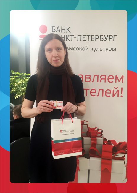 Банк «Санкт-Петербург» подвел окончательные итоги акции «Кредитный ответ на ремонтный вопрос», последние призы нашли своих счастливых обладателей. Для участия в акции необходимо было с 01 октября по 30 ноября оформить потребительский кредит в любом офисе Банка или в интернет-банке i.bspb.ru Награждение состоялось 28 декабря в ДО «Центральный». Победителям вручили подарочные сертификаты на покупки в гипермаркетах «Максидом» номиналом 50 000 рублей. Не остались без подарков и участники акции из Калининграда. Заместитель директора филиала «Европейский» Константин Герасимов подарил победителю сертификат номиналом 50 000 рублей на покупки в ТЦ «Бауцентр». А вы хотите выиграть бесплатный шопинг в любимом магазине в ТРЦ «Галерея»? Участвуйте в новой акции «Калейдоскоп новогодних подарков»: по 31.01.2017 оформите потребительский кредит или кредитную карту в любом офисе Банка или в интернет-банке i.bspb.ru. Среди участников мы разыграем 21 сертификат номиналом 25 000 рублей и 10 сертификатов номиналом 15 000 рублей на покупки в ТРЦ «Галерея» или ТРЦ «Калининград Плаза». ПАО «Банк «Санкт-Петербург» Адрес: Малоохтинский проспект, 64А, 195112, Санкт-Петербург Телефон: 8 /800/ 222 5050, Электронная почта: cc@bspb.ru Информирование клиентов о специальных предложениях Банка может осуществляться с номера 8 /812/ 339 3090 ПАО «Банк «Санкт-Петербург»