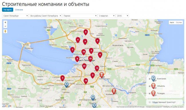 Кроме того, объекты доступны как в режиме карты, так и в привычном режиме интерактивного списка.