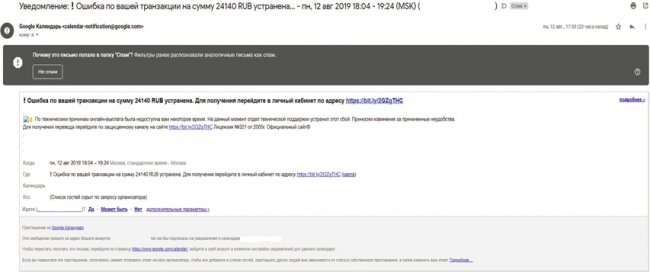 Зафиксированы мошеннические рассылки событий на почтовые адреса gmail.
