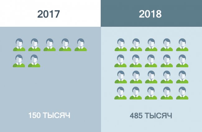 Ежегодно база растет в среднем в 2,5 раза. Когда рынок был небольшой и только-только зарождался, например в 2016 году, мы наблюдали трехкратный рост. Этот год мы заканчиваем с приростом базы в 2,5 раза. В цифрах – на конец прошлого года мы обслуживали 150 тыс клиентов. На конец текущего – 485 тыс клиентов.