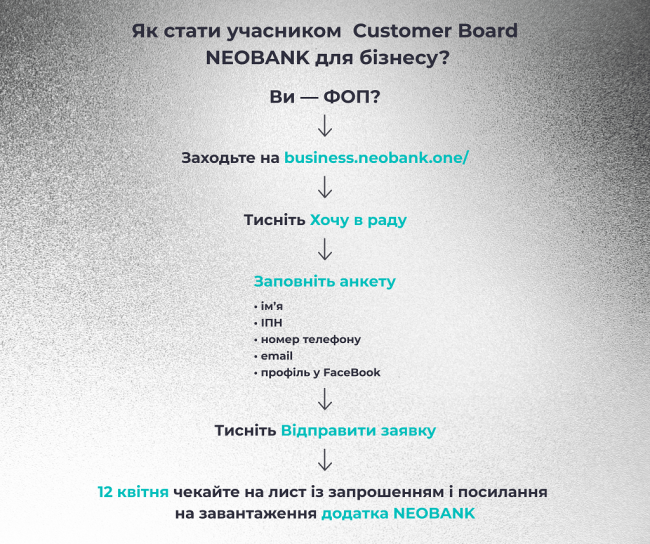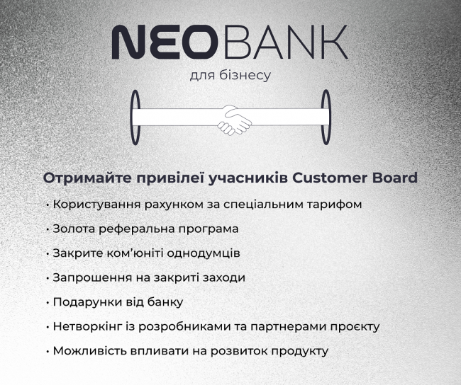 Елена: Да, действительно 22 марта мы объявили о запуске беты нашего нового цифрового банка и в этот же день открыли регистрацию на участие всех желающих в Customer Board. На нашей памяти это первый случай в Украине, когда цифровой банк создается вместе с его будущими клиентами. Наша цель – обеспечить клиентский контроль улучшения существующего продукта. Сделать продукт, который на момент релиза будет максимально функциональным и удобным для предпринимателей. А кто лучше знает их потребности, чем они сами? Поэтому идея создать совет первых клиентов NEOBANK очень органично ложится в нашу философию.