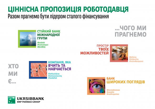 UKRSIBBANK предоставляет широкий спектр возможностей для развития. Прежде всего, это постоянное изменение в процессах и рабочих задачах, которые побуждают нас быть креативными, изобретательными, лучше сотрудничать друг с другом и быстро учиться на практике.