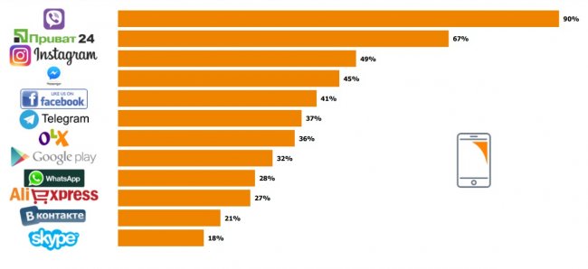 Среди приложений наибольшей популярностью пользовались Viber, Приват24 и Instagram.