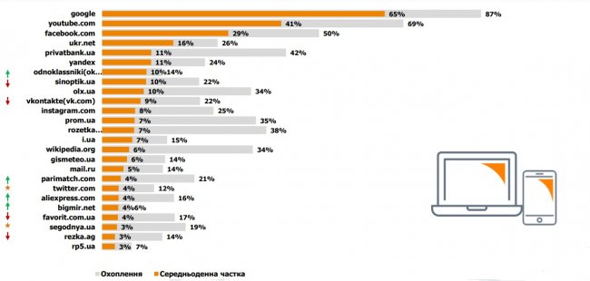 На первом месте по посещаемости поисковая система Google Украинцы часто покупают онлайн и пользуются финансовыми сервисами Фото: mrcooper.com Интернет Ассоциация Украины представила результаты исследования онлайн-аудитории страны за октябрь. Так, если учитывать трафик с десктопных и мобильных устройств, украинцы чаще всего пользовались соцсетями, совершали онлайн-покупки, и заходили в Приват24. ТОП-25 самых популярных сайтов в октябре 2019 Исследование Factum Group Ukraine по заказу Интернет ассоциации Украины ТОП самых популярных мобильных приложений в октябре 2019 Исследование Factum Group Ukraine по заказу Интернет ассоциации Украины Ранее мы писали, чего хотят украинцы от онлайн-покупок. Так, пользователи готовы активнее совершать покупки в интернете, если получат ряд преимуществ: например, бесплатную доставку и быстрый возврат.