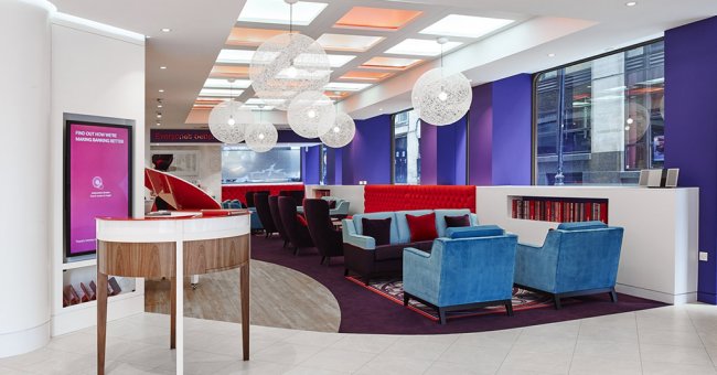 В отделениях Virgin Money клиенты смогут посмотреть телевизор, отдохнуть в гостинной и ознакомиться с финансовыми сервисами банка на большом сенсорном экране. В отделении даже есть зал, похожий на салон самолета. Там проходят семинары и конференции.