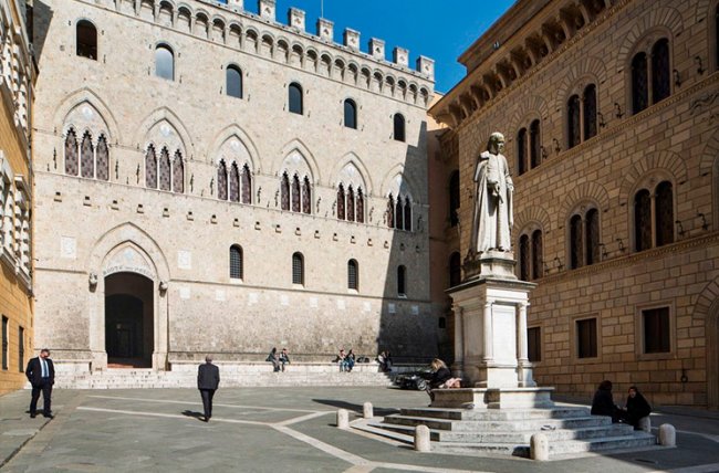Банк был основан 27 февраля 1472 года Генеральным советом Сиенской республики для выдачи займов по малым процентным ставкам неимущим жителям. Monte dei Paschi di Siena — это старейший банк в мире, работающий до сих пор. Имеет свыше 2000 отделений и 4,5 млн пользователей. В штаб-квартире банка, Палаццо Салимбени, хранится собрание произведений искусства и уникальные исторические документы, принадлежащие банку. Коллекция недоступна для обывателей.