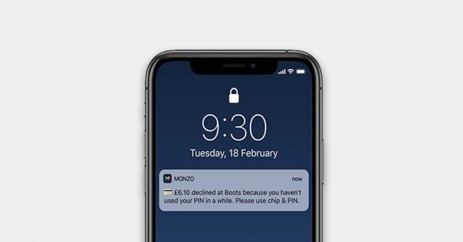 Но если один из этих инцидентов случится с клиентом Monzo и он забудет ввести PIN, на его смартфон мгновенно придет объяснение и предложение исправить ситуацию.