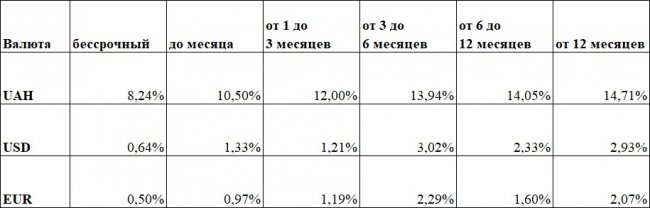 Средние ставки по депозитам в гривне: