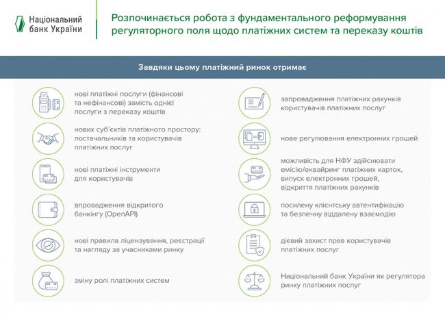 По словам заместителя председателя Нацбанка Украины Сергея Холода, данные изменения окажут положительное влияние на развитие инноваций в сфере бизнес-решений на рынке платежных услуг.