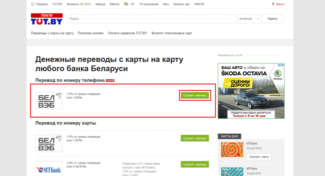 Переводим деньги по номеру телефона: новый сервис на Финансах TUT.BY - «Банки»