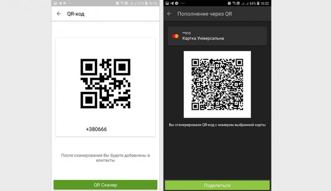 Была изменена логика запроса денежных переводов по QR-коду. Если ранее для того, чтобы отправить (или показать) кому-то свой код с зашифрованным номером карты, нужно было зайти в меню карт, сейчас достаточно нажать на сканер QR на главном экране. В старой версии по такому запросу выводился QR с зашифрованным номером телефона.