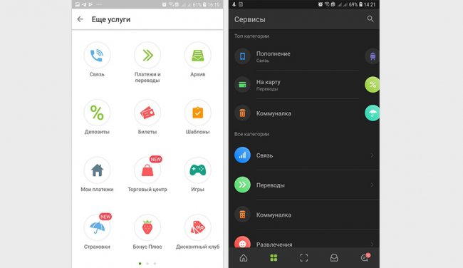 Например, раздел «Платежи и переводы» практически не изменился. В новой версии он оформлен в формате списка: