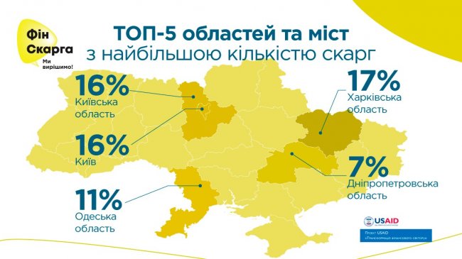 Наибольшее количество обращений на платформу поступило из Харьковской области — 17%, Киевской — 16%, города Киева — 16%. Пятерку самых активных регионов замыкает Одесская область — 11% и Днепропетровская — 7%.