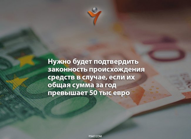 Нужно будет подтвердить законность происхождения средств в случае, если их общая сумма за год превышает 50 тыс евро (для юридических лиц этот лимит выше — 2 млн евро). Если сумма меньше, то никаких вопросов возникнуть не должно.