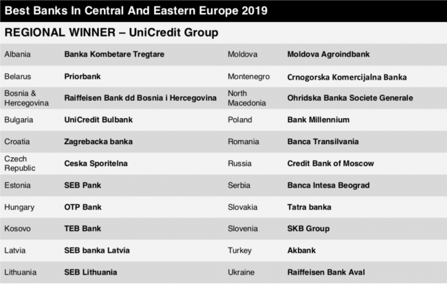 Журнал Global Finance обнародовал результаты 26-й ежегодной премии «Лучший банк», где назвал лучшие банки в Центральной и Восточной Европе. В список попал и украинский Raiffeisen Bank Aval. Об этом сообщает пресс-служба издания.