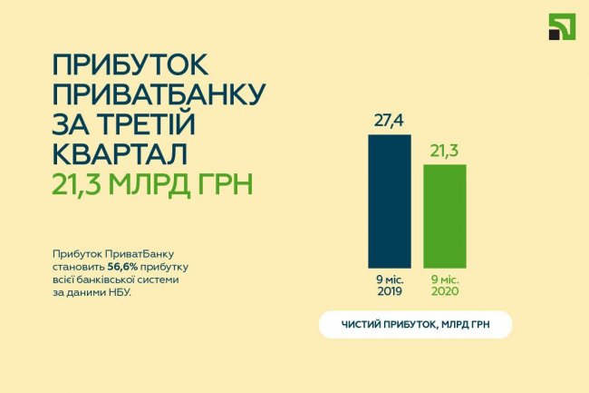 ПриватБанк завершил третий квартал 2020 года с прибылью 21,3 млрд грн. Об этом сообщила пресс-служба банка. По итогам первого полугодия года прибыль банка составила 14,1 млрд грн.