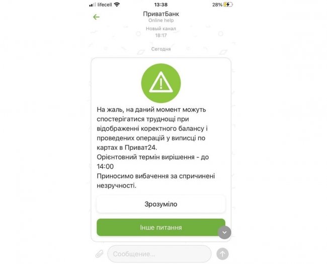 Государственный ПриватБанк сообщил о сбоях в работе. Об этом финучреждение известило клиентов в приложении Приват24.