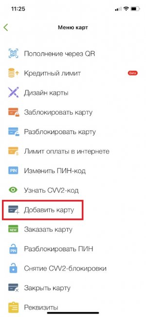 2. В меню приложения выберите «Меню карт» — «Добавить карту».