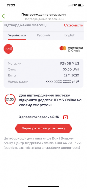 Мы протестировали процедуру добавления карты стороннего банка (для этого использовали карту банка ПУМБ) в приложение Приват24.