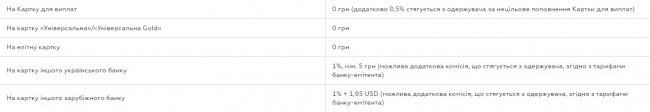 На денежные переводы с карты и на карту другого украинского банка действуют такие комиссии (информация с сайта ПриватБанка):