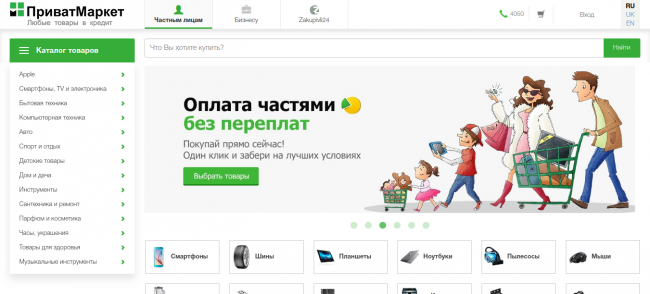 Хотя, стоит отметить, что некоторые банки все же идут дальше. Например, ПриватМаркет от ПриватБанка — полноценный маркетплейс, позволяющий купить товары у продавцов как за полную стоимость, так и в рассрочку.
