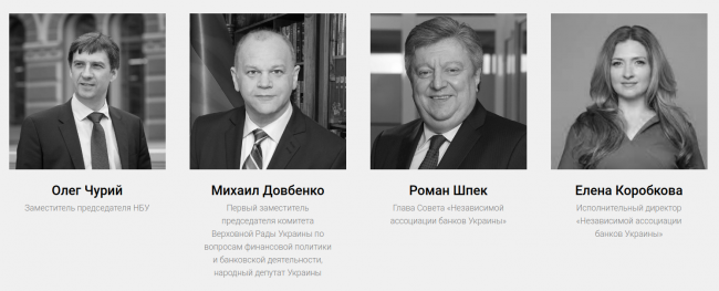 Среди экспертов форума: Заместитель председателя НБУ – Олег Чурий, руководитель проектов и программ департамента открытых рынков, Эмал Бахтари, украинский экономистом, политик, народный депутат Украины – Михаил Довбенко, глава Совета «Независимой ассоциации банков Украины» — Роман Шпек и ее исполнительный директор — Елена Коробкова, представители силового блока — ГПУ, НАБУ, СБУ, прокуратуры, налоговой, авторитетных консалтинговых, аудиторских и юридических компаний – Pricewaterhouse, AmberCorporation, Deloitte Ukraine и лидирующих банков Украины.