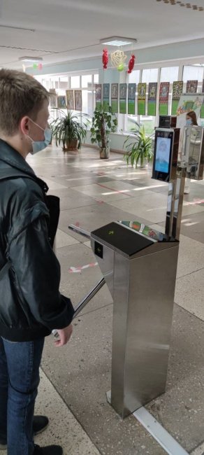 Разработчики решили не использовать стандартное решение идентификации учеников по карточке, ведь дети ее часто теряют или забывают. Распознавание учеников и работников учреждения производится по лицу. Кроме того, что система распознает лицо, она также определяет температуру, фиксирует отсутствие защитной маски и сигнализирует о необходимости ее одеть.