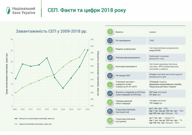 Стоит отметить, что СЭП — государственная банковская платежная система, обеспечивающая совершение межбанковских переводов через счета, открытые в Национальном банке Украины. Она обеспечивает осуществление 97% межбанковских переводов средств в национальной валюте в пределах Украины.
